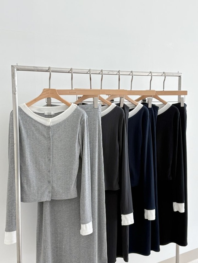 エズレイヤードカーディガン&スカートセット/ lesom