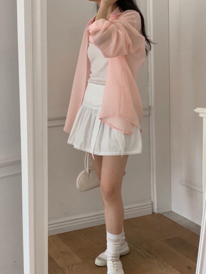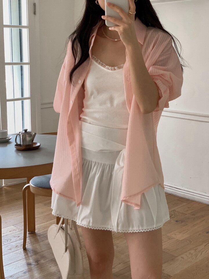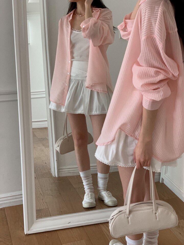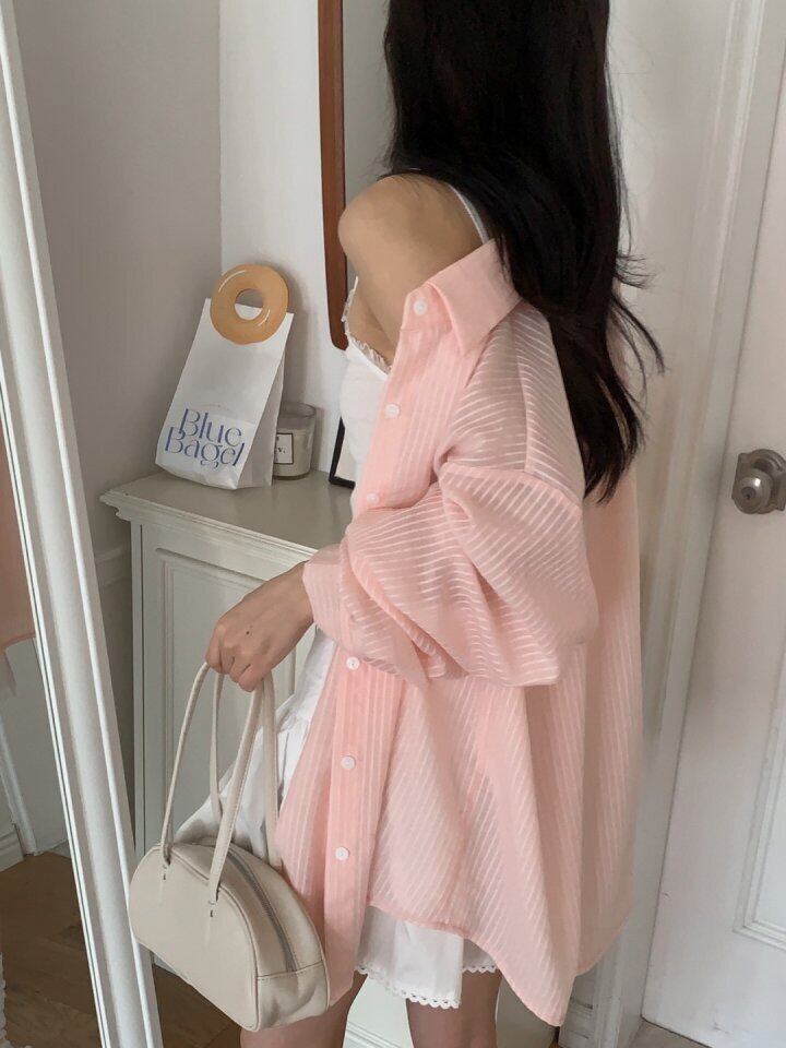ピンキーストライプオーバーシャツ / hither
