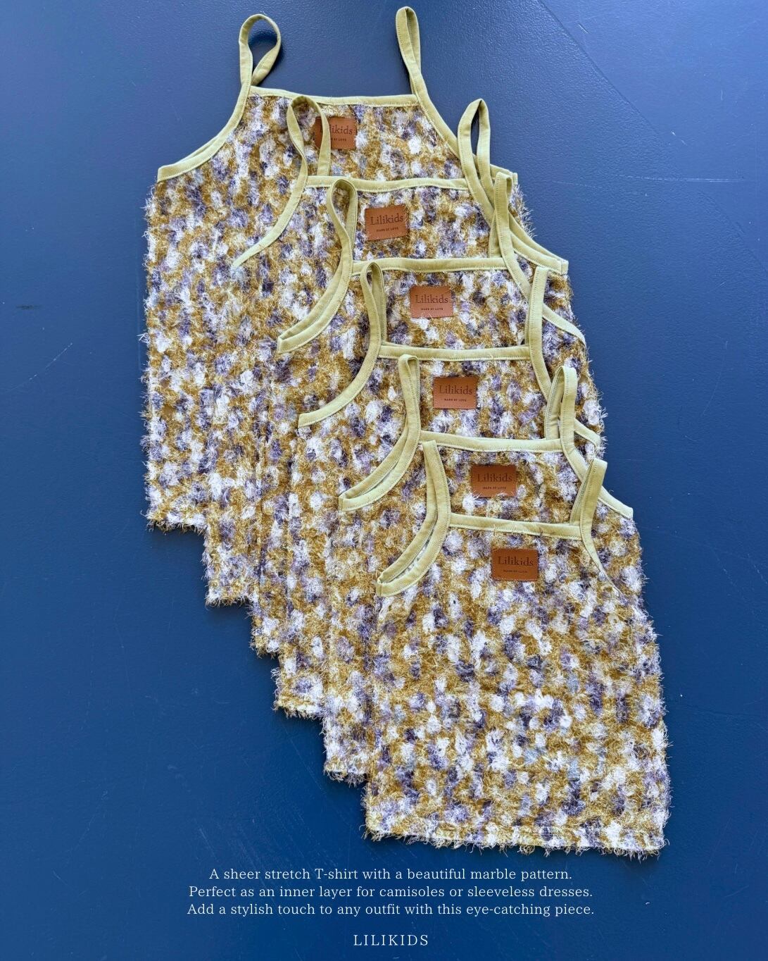 ♡やさしく鮮やかなアンティーク調の色合いが魅力のキッズキャミソール。水彩画のような色合いがアクセントになったデザイン。シンプルながら存在感のある一枚です。レイヤードにもぴったりで、夏のおしゃれコーデに大活躍。