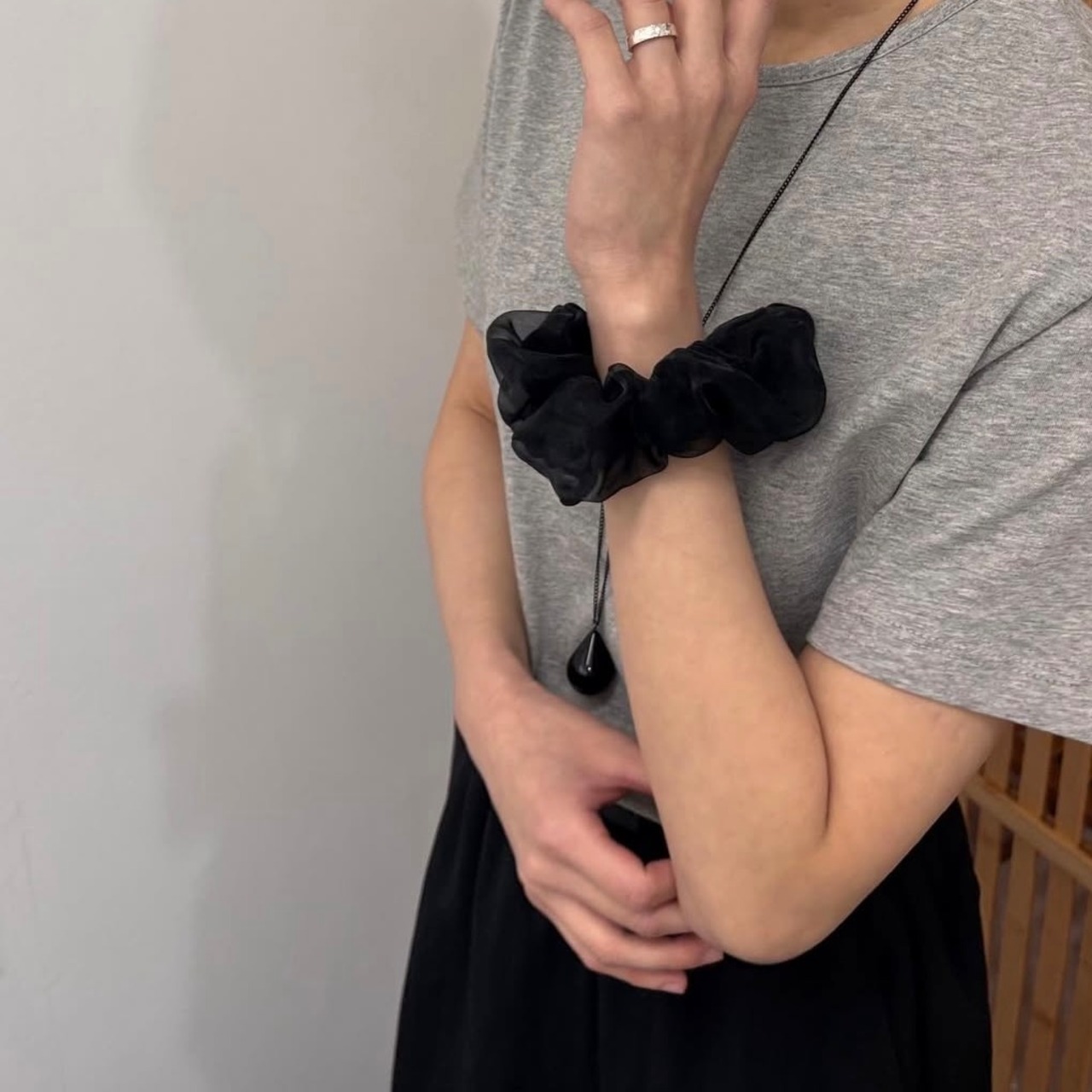 (お写真1枚目左から、アイボリー、ピンク、ブラック、クリーム、メランジグレー)