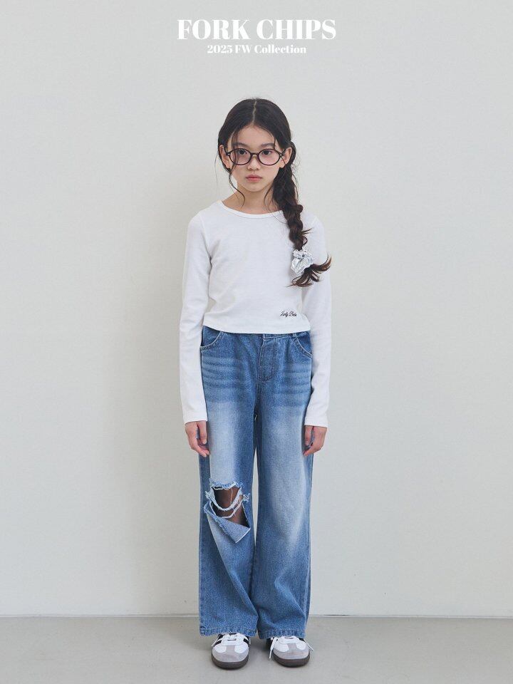 オープンダメージデニムパンツ M,L,XL,JS,JM,JL,JXL / Forkchips25autumn
