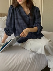 カフチェックブラウス(1+1) / Hither