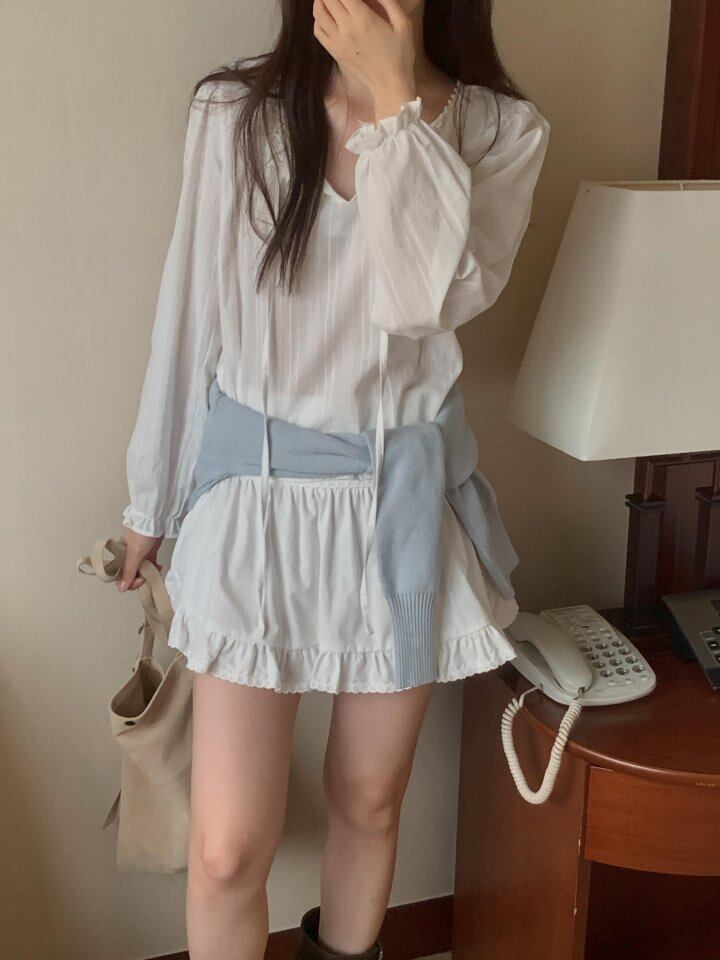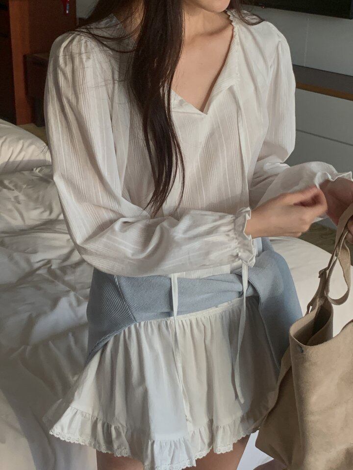 パディVネックブラウス(1+1) / Hither