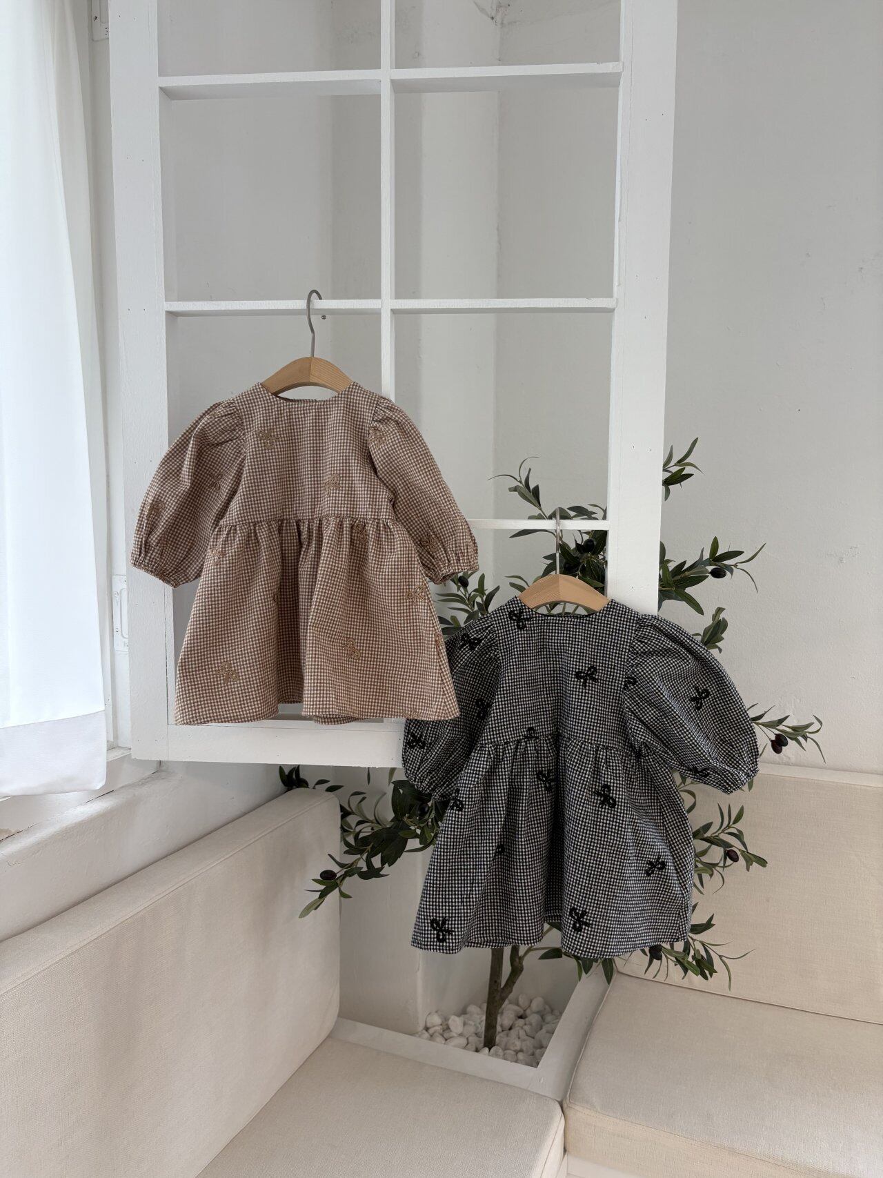 リボンチェックワンピース XS,S,M,L,XL,JS / Pom25autumn