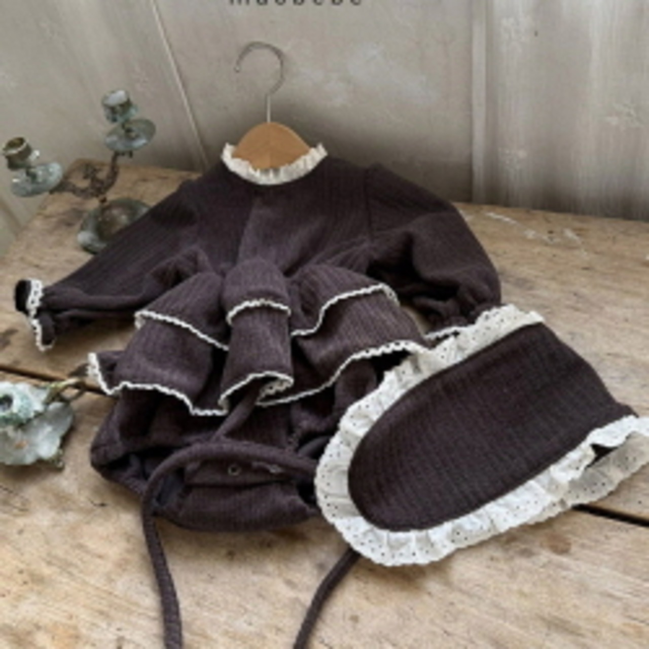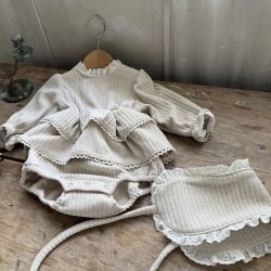 リブティアードロンパース(イヤーマフset) S,M / Mac25winter