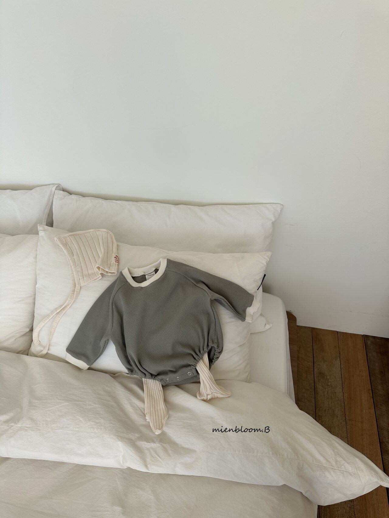 (baby)ワッフル配色ロンパース S,M,L / MienBloomB 26spring