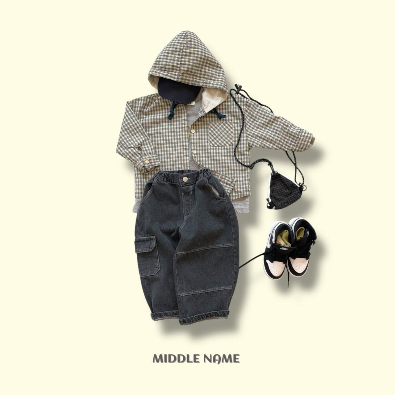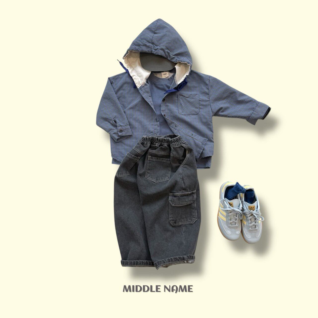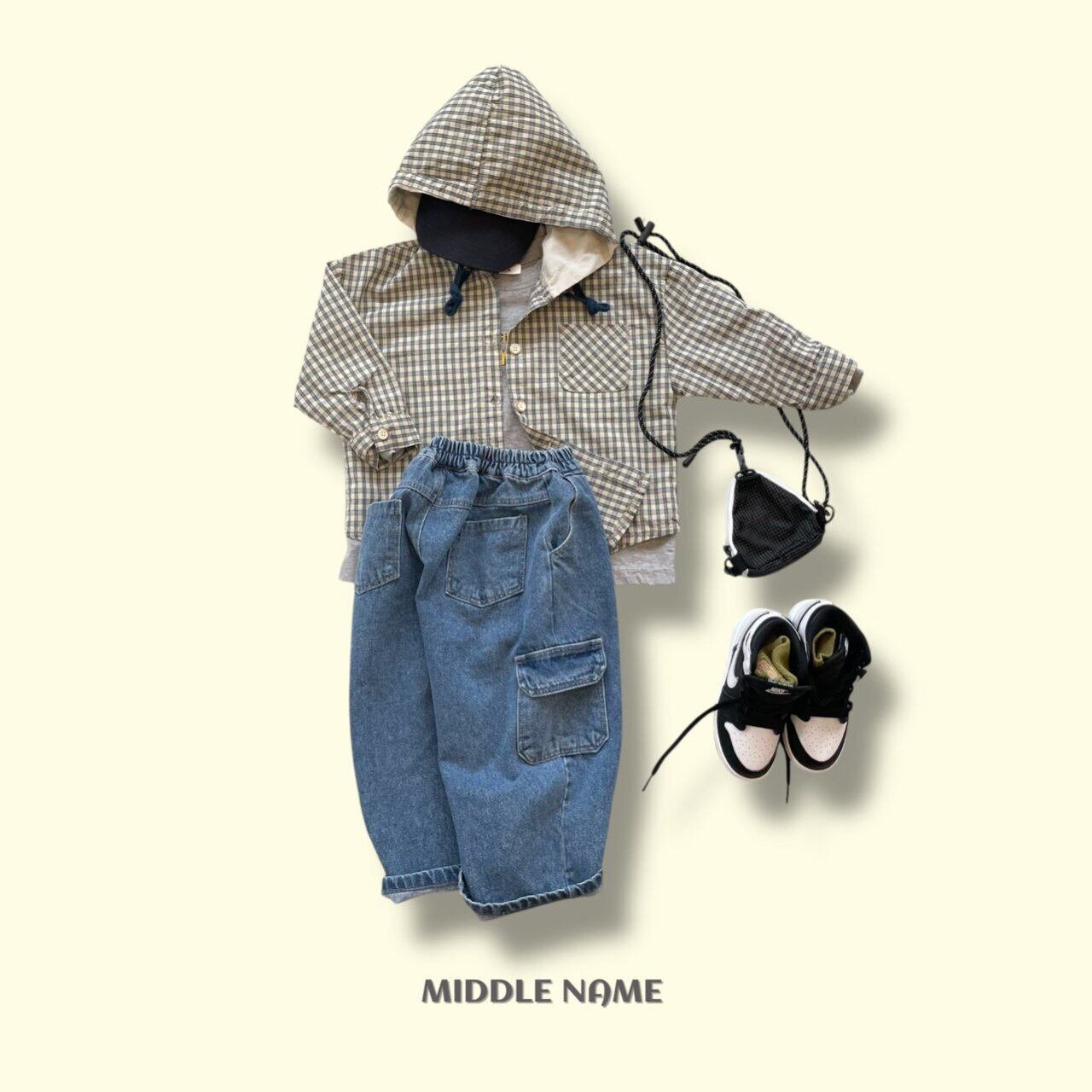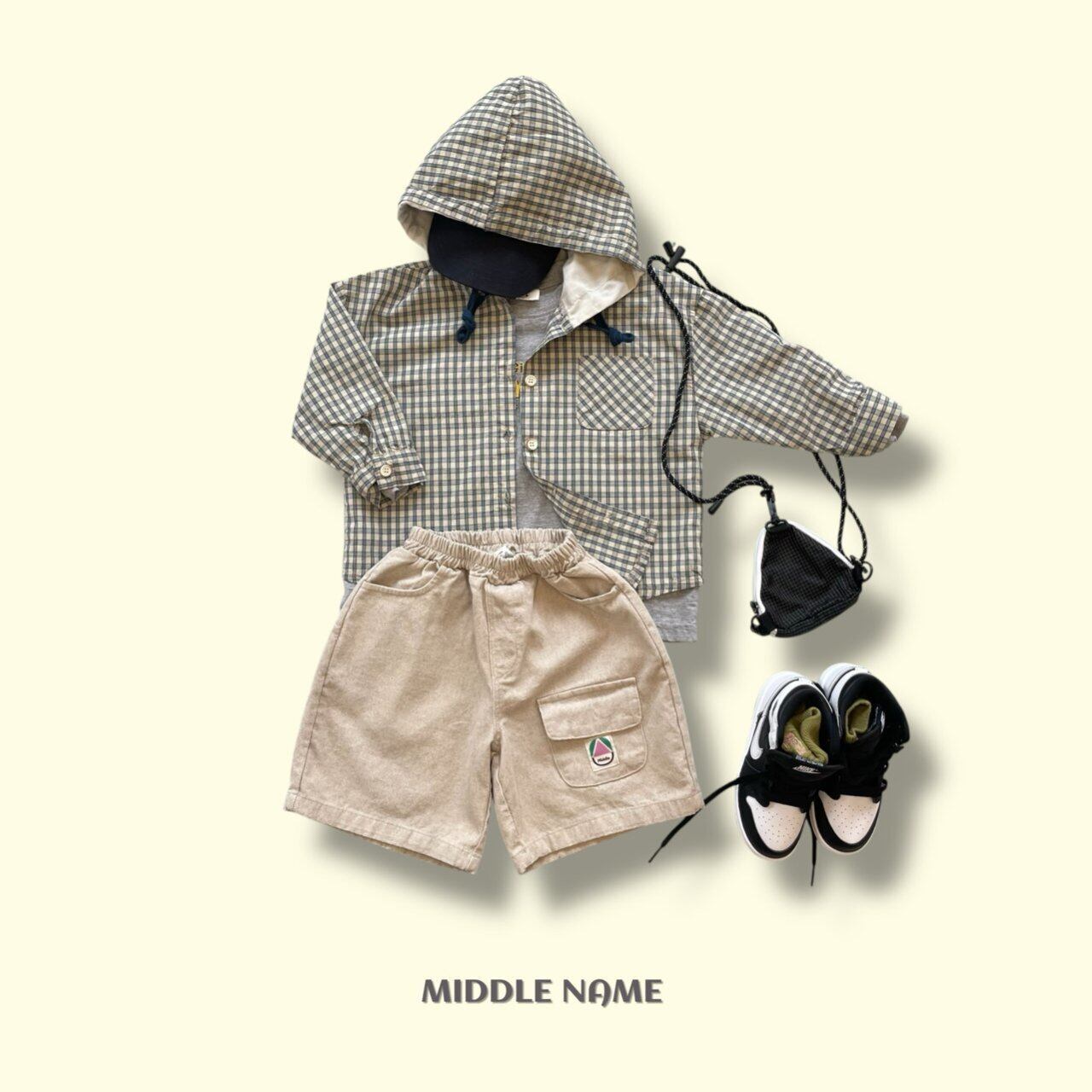 フードチェックシャツ S,M,L,XL,JS,JM/ middlename 26spring