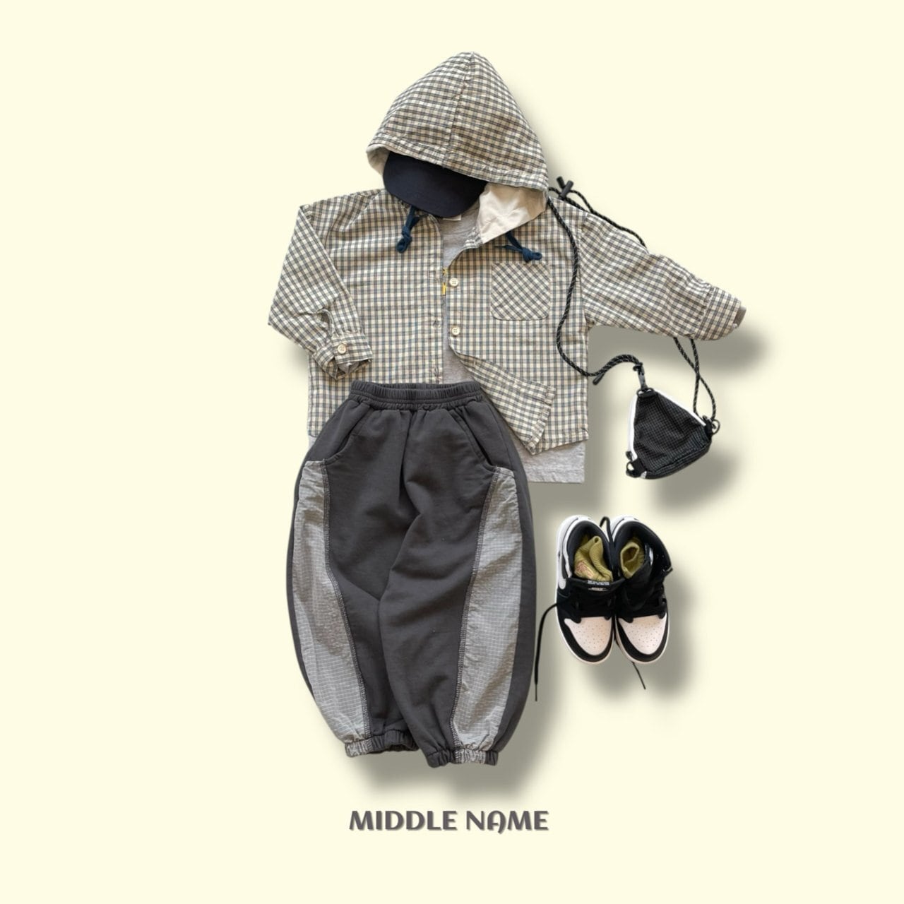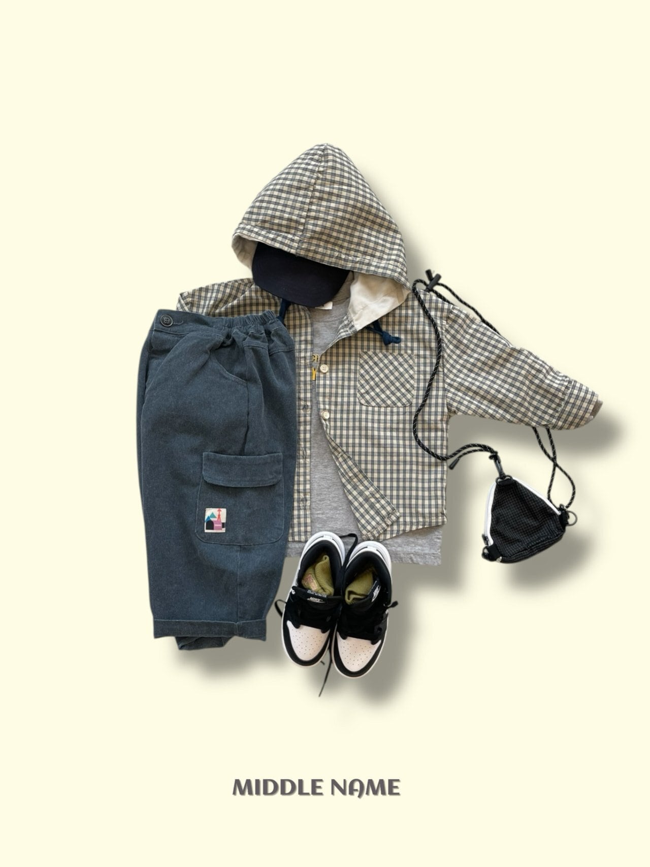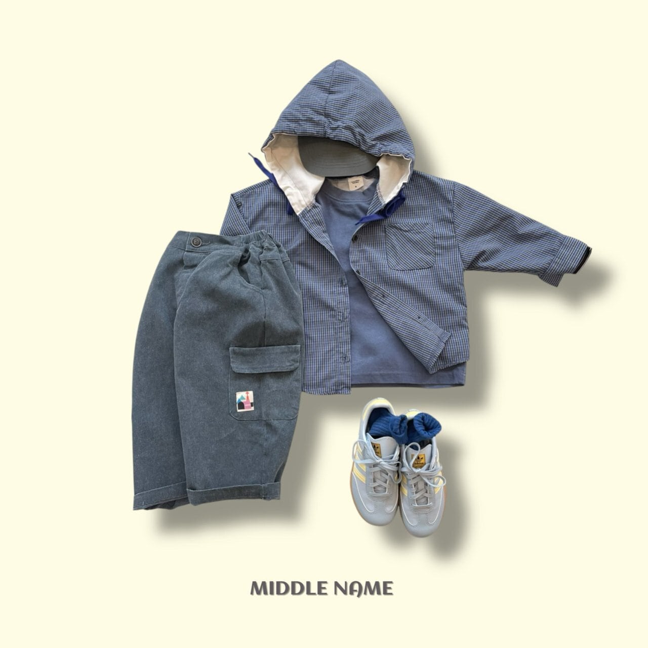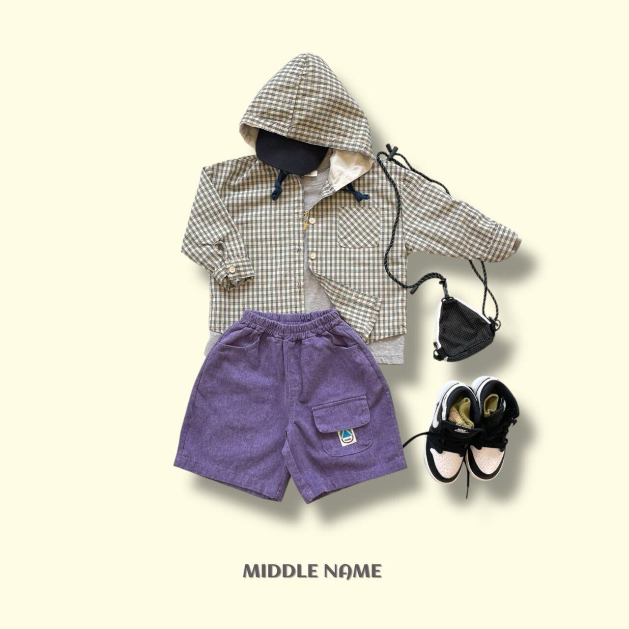 フードチェックシャツ S,M,L,XL,JS,JM/ middlename 26spring