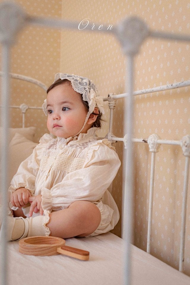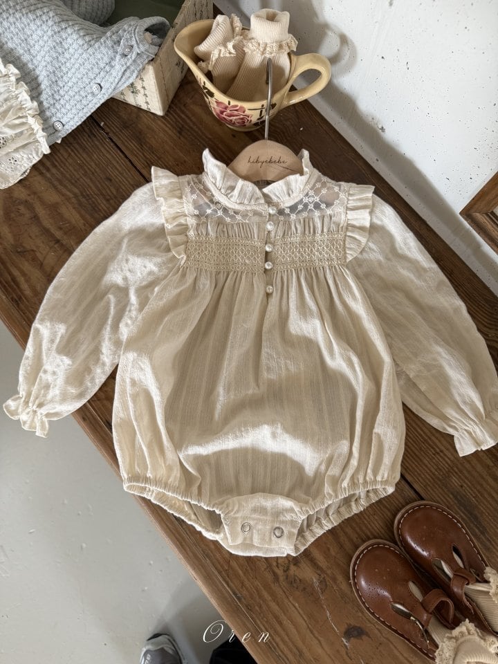 (baby)エリースモーキングロンパース(クリーム) S,M / OREN 2nd 26spring