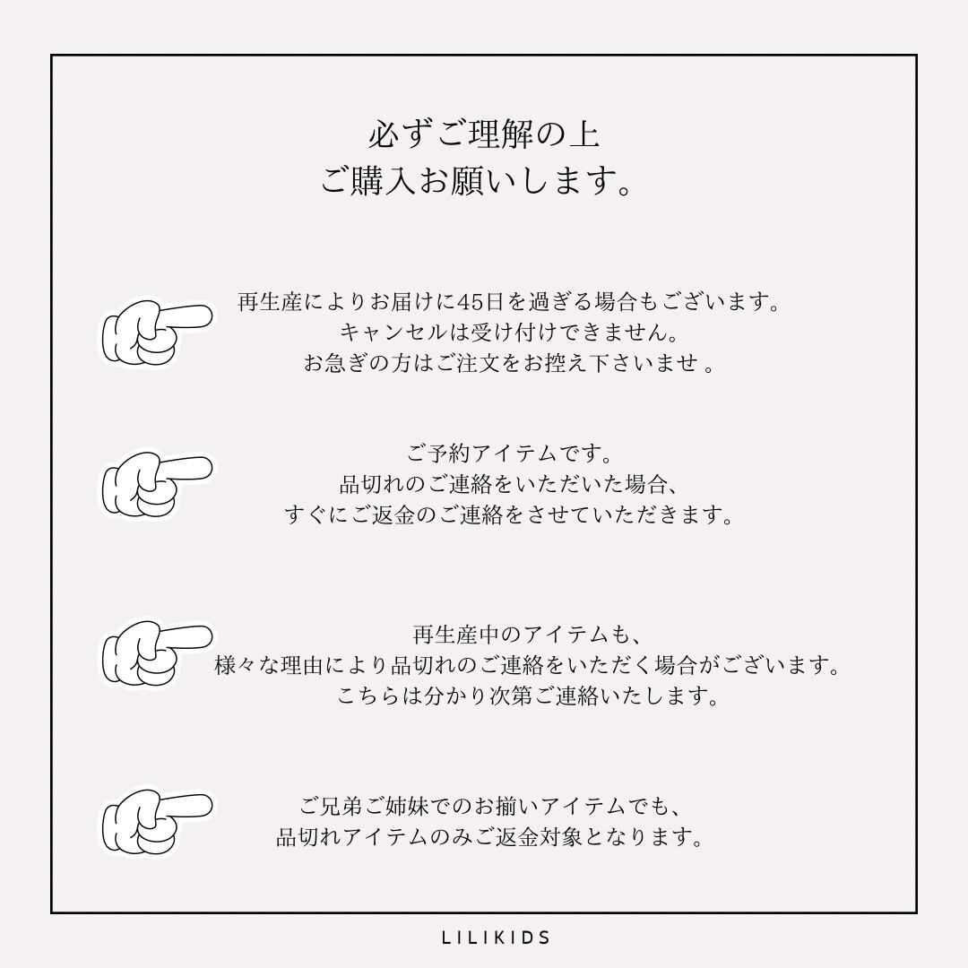 ♡ご兄弟ご姉妹お揃いアイテムは、品切れになりましたアイテムのみご返金対象となります。