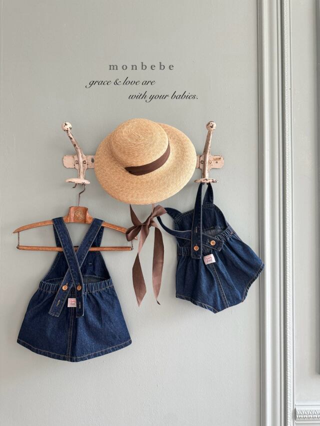 ボンボンデニムサスペンダーパンツ S,M,L(kids)/ MONBEBE 26spring