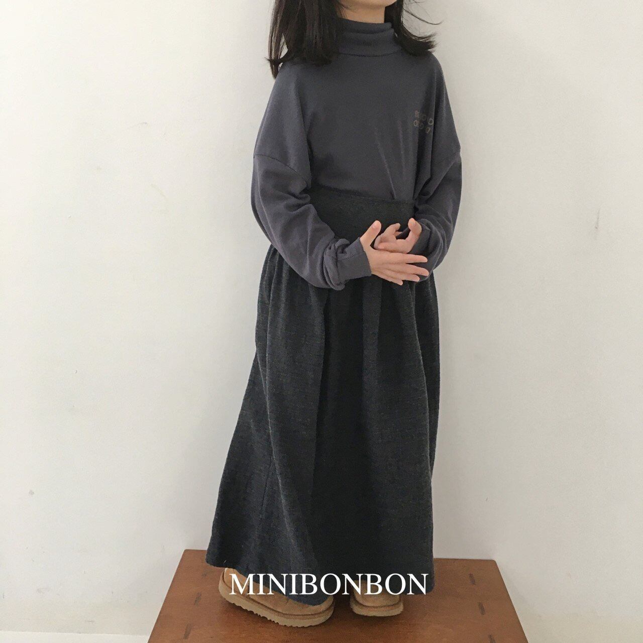 暖かくナチュラルなピッチ起毛のコットンで作られたロングスカート。ウエストは苦しくない程度にぴったりフィットし、ふんわりフレア感のあるシルエットが可愛いボトムです。