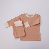 優れた伸縮性とソフトなタッチ感が魅力。トーンダウンしたクリアでさわやかなカラー感のキッズ用セットアップです。