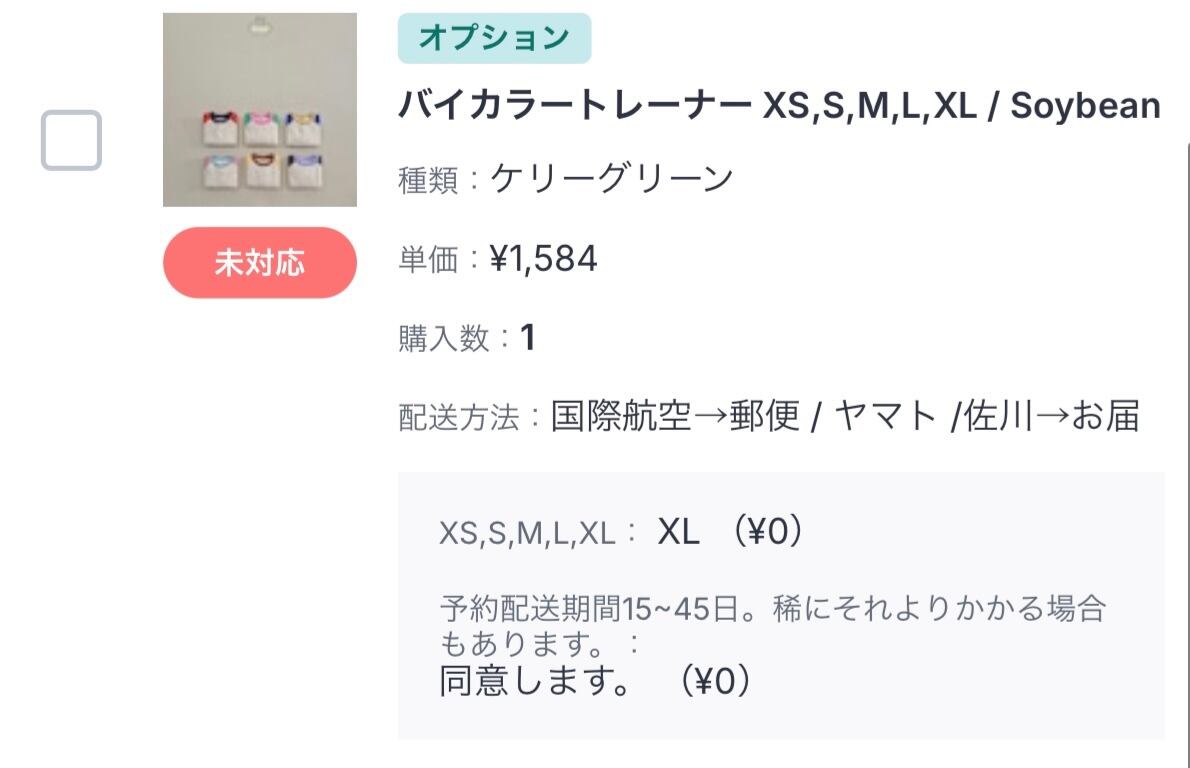 再発注しないようお願いいたします。