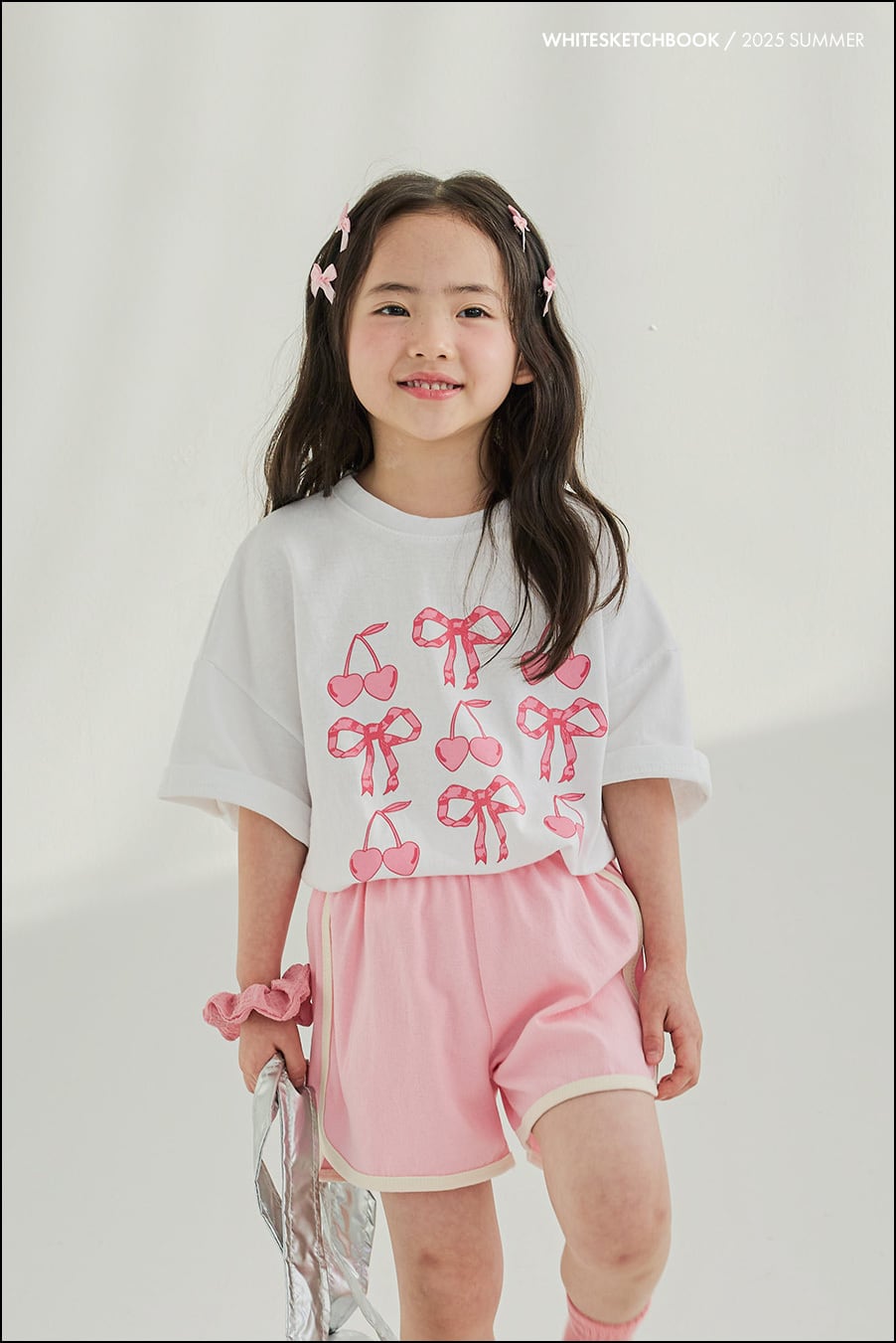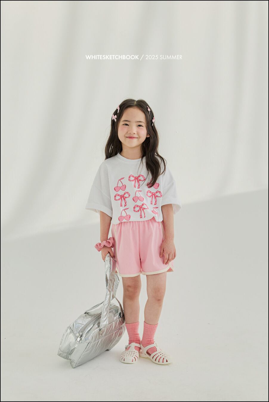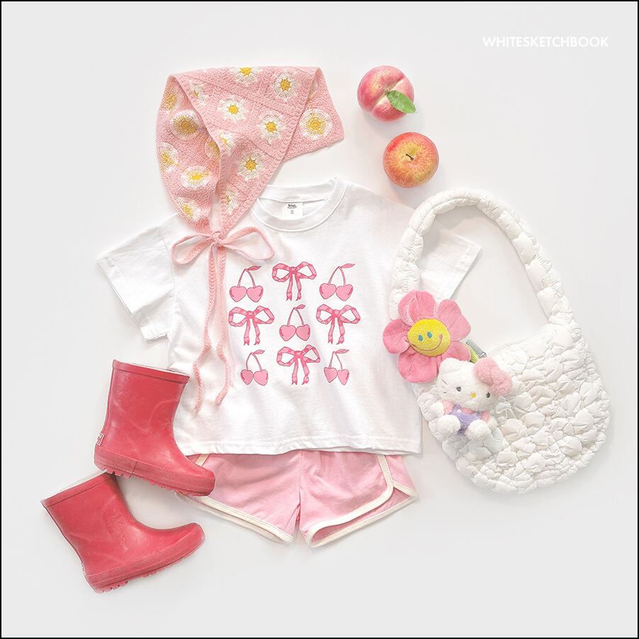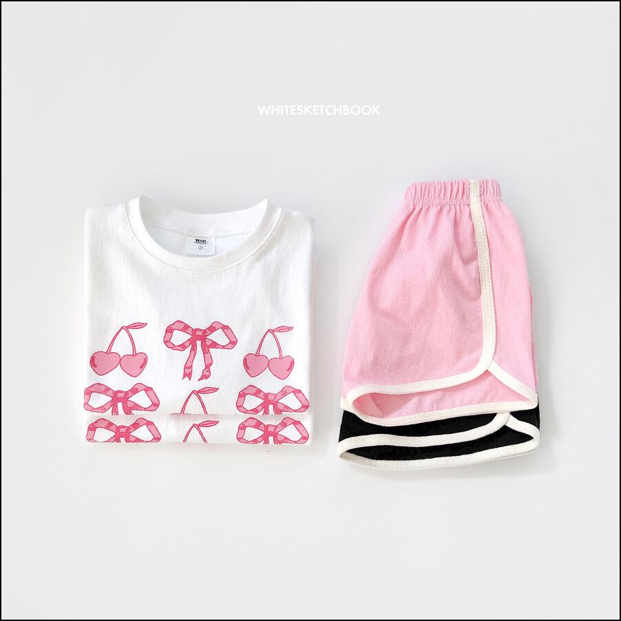 (在庫あり) リボンチェリー半袖セット ピンク7 / white sketch book
